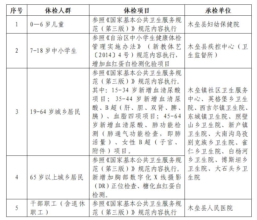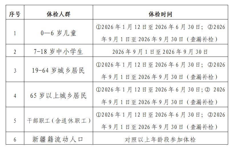 为全面贯彻落实国家医疗惠民政策,筑牢全民健康防护墙,切实做到疾病早发现、早预防、早治疗,木垒县将于2026年1月12日起全面启动全民健康免费体检工作,现将相关事宜公告如下: