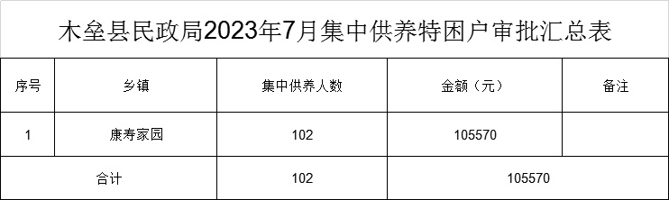 木垒县民政局2023年7月养老服务扶持补贴发放表